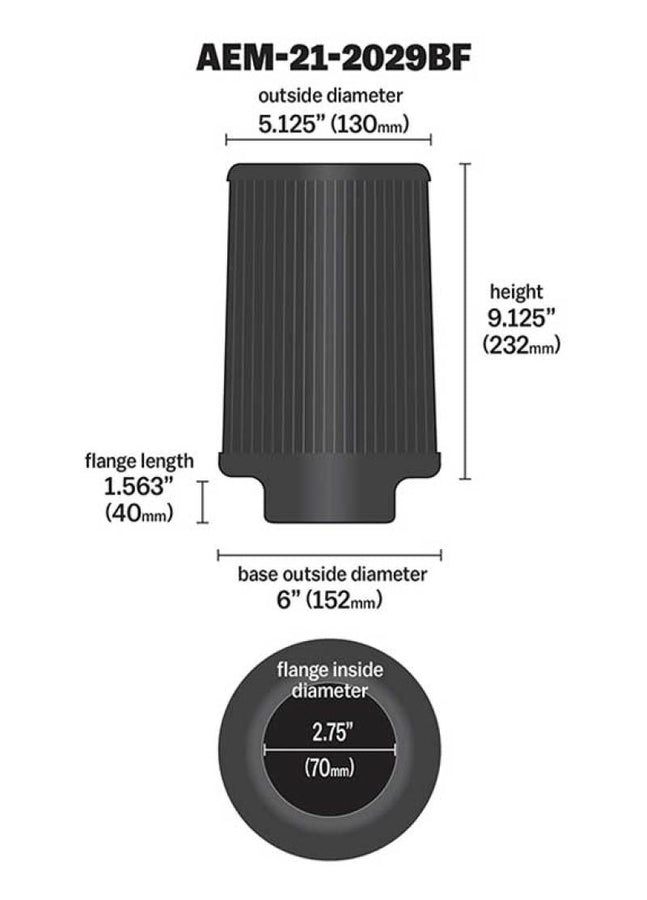 AEM Dryflow Conical Air Filter 2.75in Flange ID / 6in Base OD / 5.125in Top OD / 9.125in Height