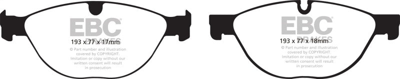 EBC Yellowstuff is an aramid fibre based brake compound with high brake effect form cold and is possibly one of the first ever compounds that can be used for STREET AND TRACK DRIVING. These pads do not require warm up but do get even stronger under the heat of hard driving. These are not a low dust pad and if...