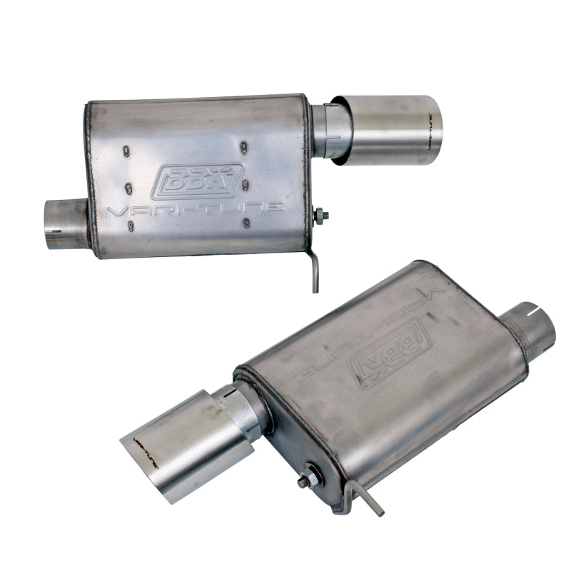 BBK Varitune cat back exhaust systems feature BBK Varitune mufflers that have a patented adjustable power valve inside that allows full adjustment of the exhaust flow through the mufflers chambers for a great sound and added performance. This adjustment is made at the rear of the muffler with a wrench by either moving the valve in or out. Once you...