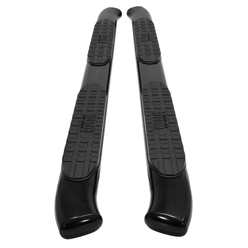 Westins Pro Traxx 5 Oval Nerf Step Bars feature a 5in. oval tube with a heavy-duty step pad that provides a wider and more secure step area. They feature 30 factory style bends that have seamless domed ends so there are no end-caps or exposed bolt heads. Applications are bolt-on installation.