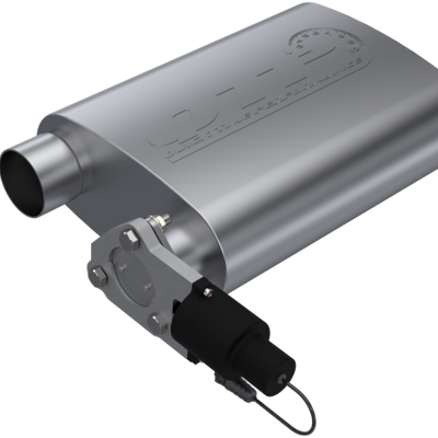 QTP 2.5in Weld-On 304SS Reverse Screamer Muffler Short Case w/Bolt-On QTEC Electric Cutout