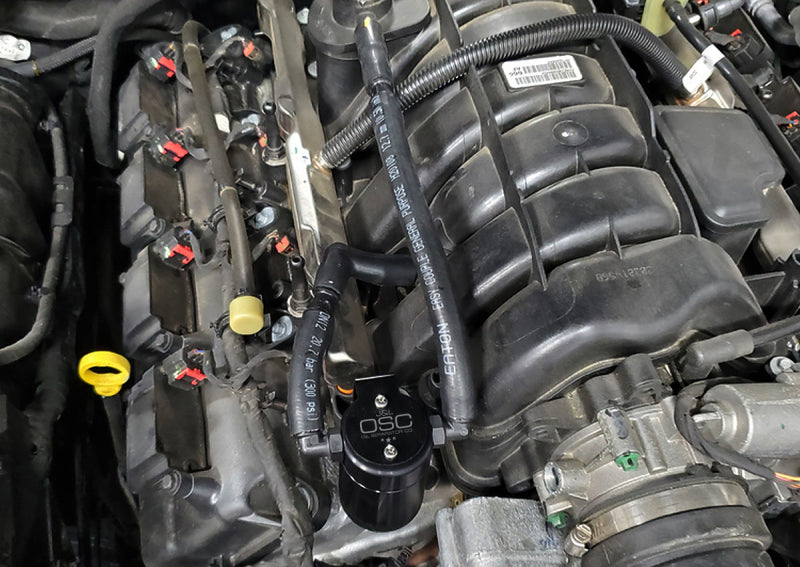 During the process of venting crankcase pressure back through your intake track, large amounts of oil, in the form of vapors can gather/accumulate in your intake tube, intake manifold runners and even dilute your gas, lowering its octane level. This happens on all engines and is even worse with forced inducted vehicles (supercharged and turbocharged) as crankcase pressures are increased. To combat this, we have developed an oil separator of our own design. Milled from solid billet aluminum this is a rock-solid piece. It has a knurled tank base for easy removal to drain the spent oil and an O-ring seal to prevent any leaks. Filtering consists of a fine mesh stainless steel screen that traps fine oil vapors and releases them once heavy enough to fall. They then pass through a 1/2" thick 1/16th" aluminum honeycomb filter where they grow every larger and then fall into the bottom. By the time the oil gets through the filter it's too heavy to be passed on into the intake. The tank holds 3 oz of fluid, while that may not sound like a lot, you shouldn’t see that much oil in your PCV system. Drain it every 2000-3000 miles and you will never come close to filling it.