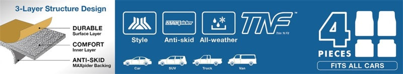 Unlike the traditional floor mats with heavy weights, commercial rubbery looking; 3D MAXpider custom-fit floor mats are the revolutionary interior protection for your vehicles with an innovative, unique three-layer structure. The digitized three dimensional design measured to exact cabin contours of your vehicle for trapping mess and spills yet, patented anti-skid backing keeps mats in place without harming the original...