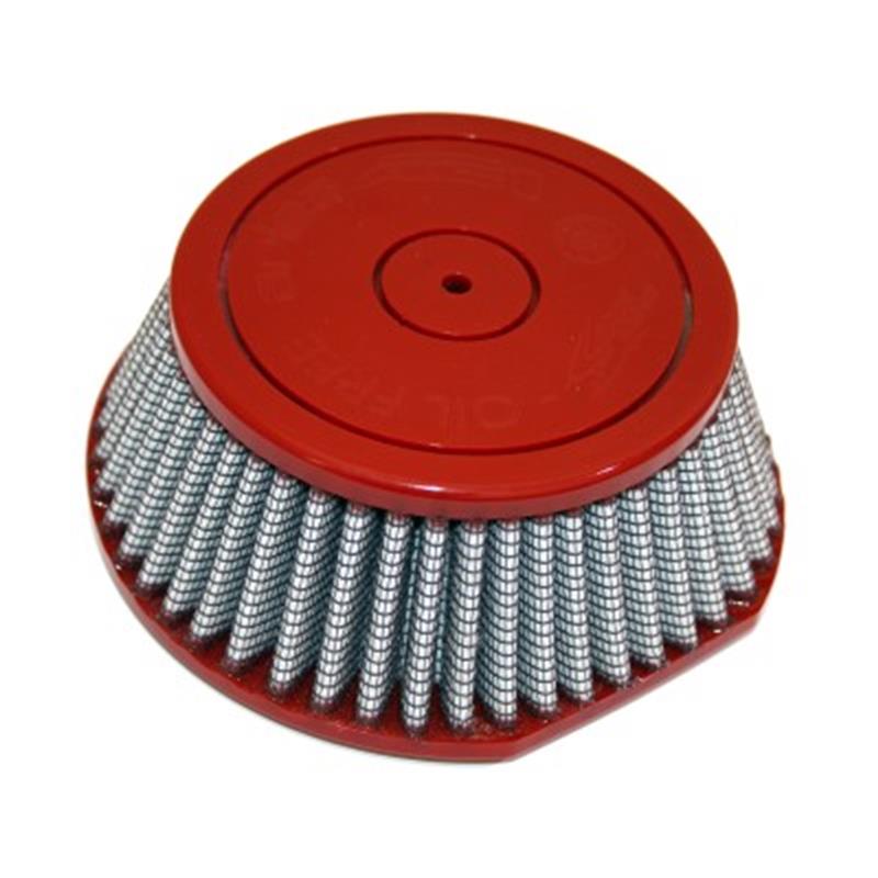 With seven layers of progressively finer mesh cotton gauze/synthetic media between 100-percent polyurethane top and base, this high flow "oiled" conical performance filter provide maximum protection with highest cumulative filtration efficiency for severe duty environments. Washable and reusable for multiple cleanings, the tall open evenly spaced pleats provide excellent dust holding capacity for longer service cycle between cleanings. Integrated urethane bump seal insures tight, no leak seal over the life of the filter.