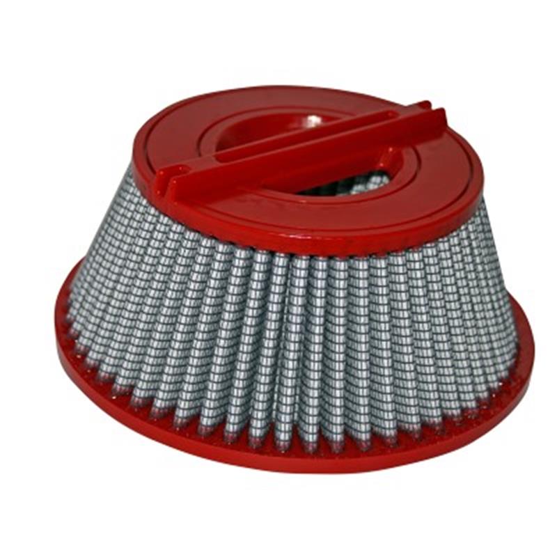 With seven layers of progressively finer mesh cotton gauze/synthetic media between 100-percent polyurethane top and base, this high flow "oiled" conical performance filter provide maximum protection with highest cumulative filtration efficiency for severe duty environments. Washable and reusable for multiple cleanings, the tall open evenly spaced pleats provide excellent dust holding capacity for longer service cycle between cleanings. Integrated urethane bump seal insures tight, no leak seal over the life of the filter.