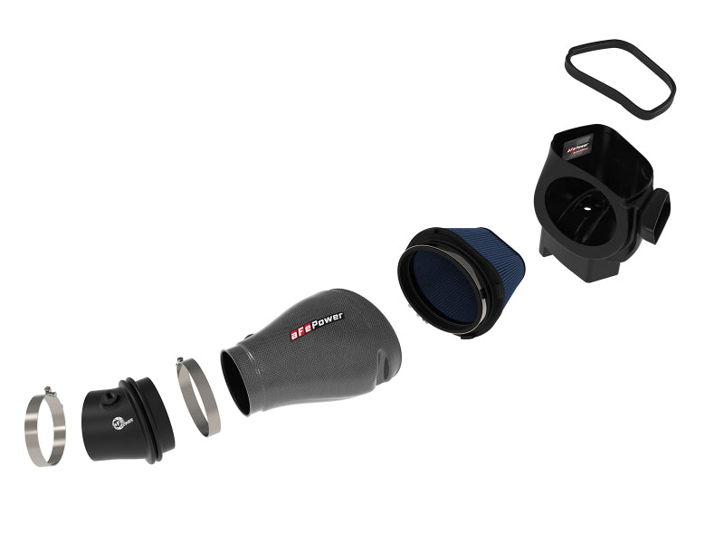 This 7” tall 360-degree radial flow air filter features a 5-1/2" by 7-1/2" flange and our pre-oiled Pro 5R media with five layers of progressively finer cotton gauze media for maximum performance. It provides your engine with the largest amount of high-flowing air and delivers the highest power gains in most cases. This media is perfect for street and/or track use. The included massive air filter is surrounded by an open-element XLPE (cross-linked polyethylene) polymer housing that minimizes warm engine air for maximum performance. Its open design allows for easy viewing of the air filter and delivers an aggressive Air Intake sound. Multiple air inlets bring in cool air when under power without capturing any warm air surrounding the engine. The lightweight tube is computer-designed to achieve maximum power gains while maintaining a perfect fit. Manufactured from 100% twill weave carbon fiber, it features zero fiberglass and is clear-coated for the highest quality construction. This is a direct fit intake system that utilizes factory mounting points and requires no cutting or modifications. All necessary stainless-steel clamps, silicone coupling, and hardware are included. Its revolutionary design, featuring our patent pending filter-to-housing interface, uses half the number of parts of a traditional cold air intake system.