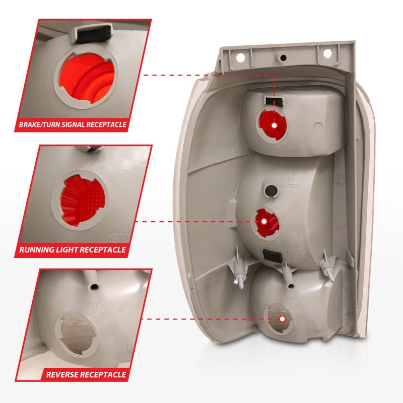 Tail Light Assembly, Clear Lens, Chrome Housing, Pair, . Guaranteed To Improve Your Vehicles Appearance. Rigorously Tested For Fit And Function. Simple Plug And Play. No Modifications Required. Easy Installation Using Common Hand Tools. Uses Stock Mounting Locations And Hardware. D.O.T. Compliant To S.A.E. Standards. Sold As A Pair. Does Not Fit Explorer Sport Models.