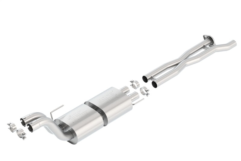 Borla(r) system is a True Dual design. This Mid-Section includes a merge X-Pipe and ATAK(r) mufflers for increased performance and our distinctive Borla(r) sound. X-Pipes unleash hidden horsepower. It fits with either the O.E. tailpipes or Borla(r) tailpipes. Built from premium T-304 stainless steel, superior to T-400 series (such as 409), to give you the absolute best in performance and...