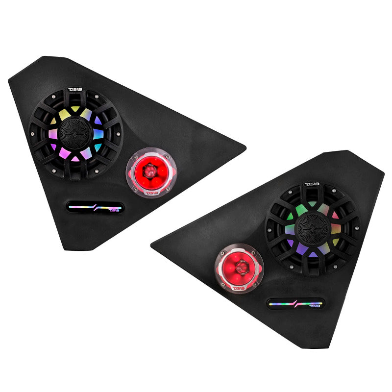 Get your Polaris Slingshot show-ready with these upgraded front kick panel pods. Designed to hold one 6.5 in. speaker and one 3.8 in. bullet tweeter, with a sleek OEM black finish that blends seamlessly into the interior.