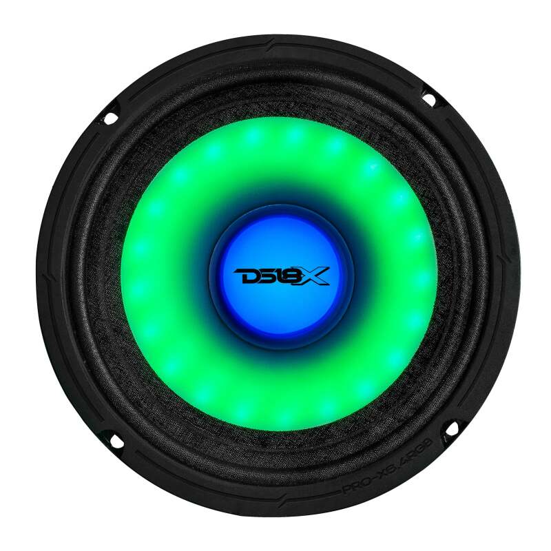 DS18 6.5in 250 Watts RMS 4ohm Mid Range Loudspeaker w/Translucent Dust Cap and Cone w/RGB LED Lights
