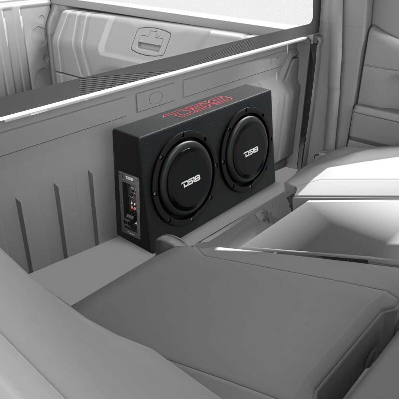 DS18 Dual 10in Shallow Enclosure w/ Subwoofer 350 Watts RMS Sealed Black Carpet Amplified