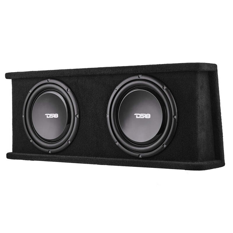 DS18 Dual 12in Shallow Subwoofer and Enclosure 700 Watts RMS Sealed Black Carpet