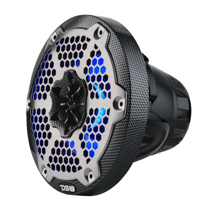 DS18 Hybrid Marine Speaker w/ Driver And RGB LED 6.5in 2-Way 250 Watts RMS 4 ohm Crbn Fiber w/ Cover