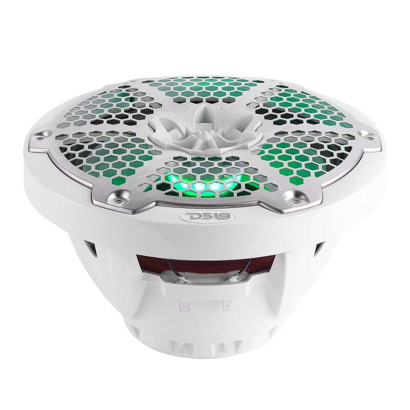 DS18 Hybrid Marine Speaker w/ Driver And RGB LEDs 8in 2-Way 350 Watts RMS 4 ohm White w/ Covers