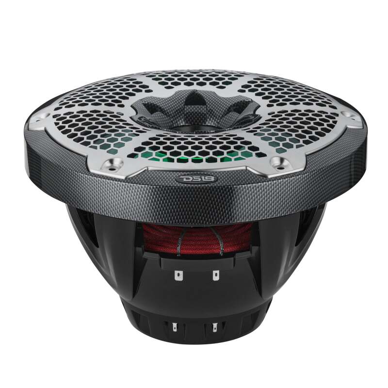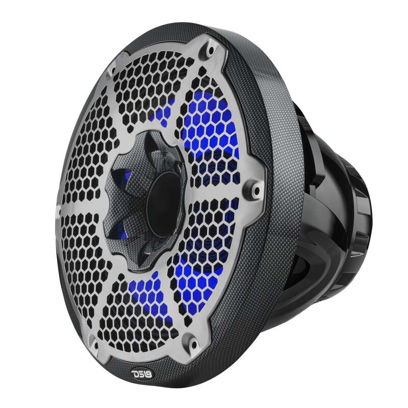 DS18 Hybrid Marine Speakers w/ Driver And RGB LED 10in 2-Way 450 Watts RMS 4 ohm Crbn Fiber w/ Cover