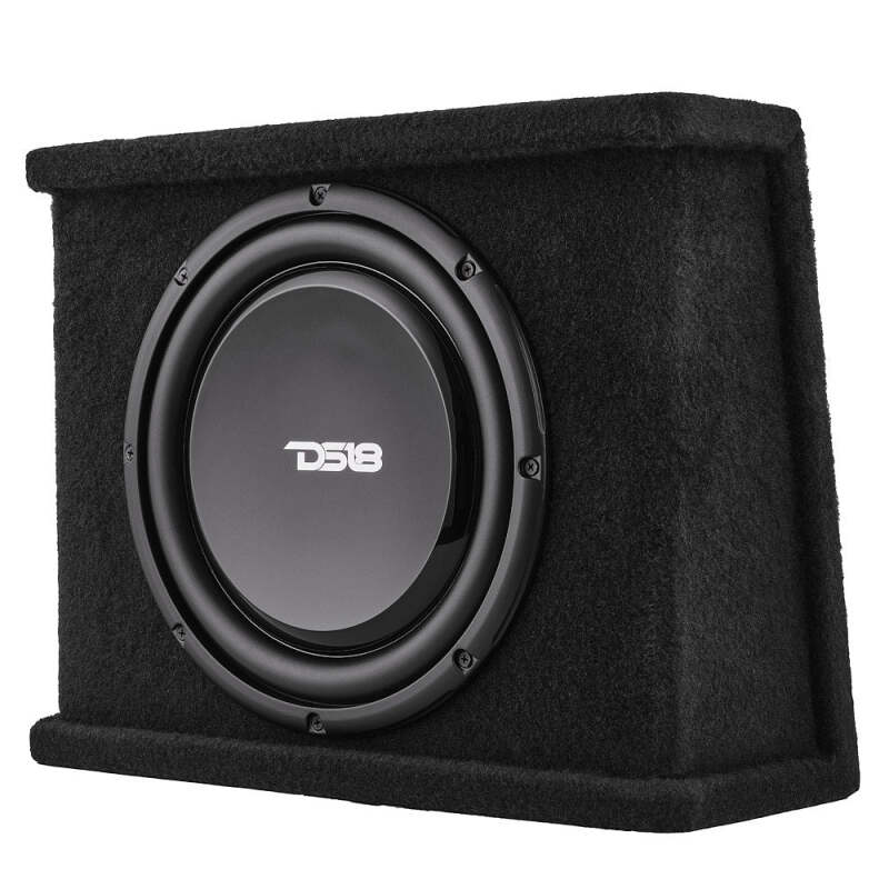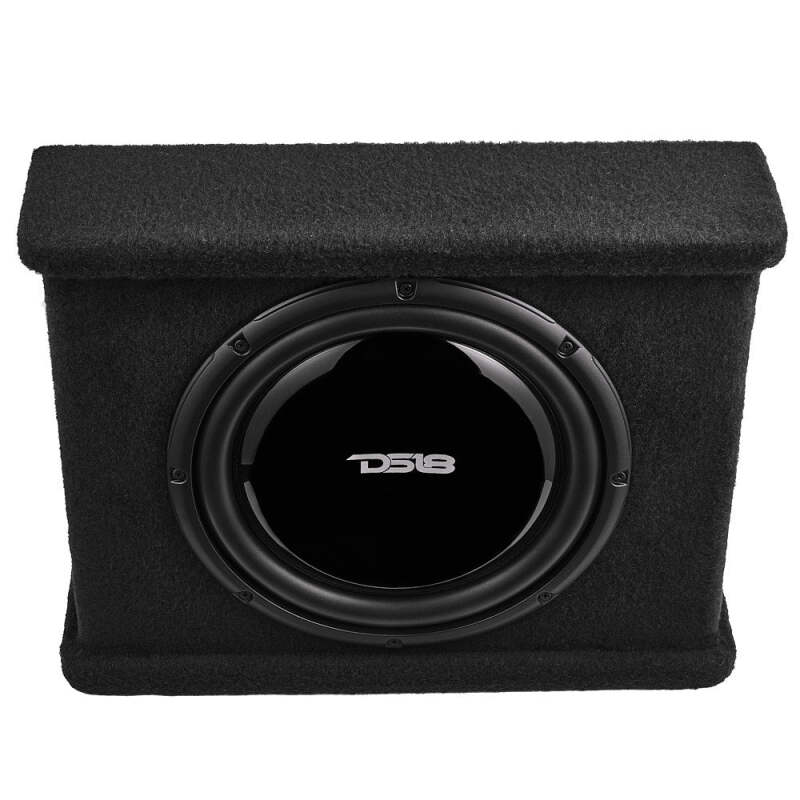 DS18 Single 12in Shallow Subwoofer and Enclosure 350 Watts RMS Sealed Black Carpet