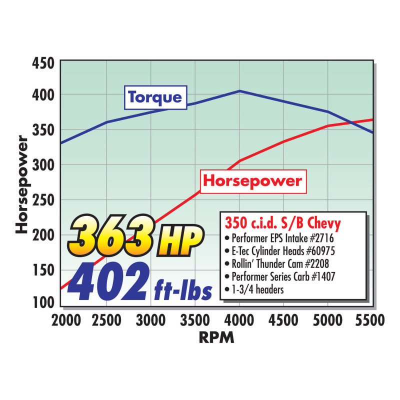 | The Edelbrock 1407 Performer Series 750 CFM manual choke carburetor is a precisely tuned, quality-built carburetor that can handle the rigors of daily driving while delivering consistent, reliable street performance from day to day. Several characteristics make the 1407 Performer Series 750 CFM manual choke carburetor an outstanding street performer. The first one is that metering rods are utilized to transition between circuits. The carburetor is unaffected by engine backfires, which means that there are no power valves to blow out, and the rods can be changed in seconds without carburetor removal or fuel draining. Secondly, the carburetor has the unique ability to "hold a tune", so once it is tuned, the carburetor stay's tuned. What this means to you is that compared to other carburetors, the performance remains consistent and the calibration stays unchanged. The lightweight all-aluminum body features a two-piece body that resists warping and is compatible with gasohol and blended fuels. The simple tub-type bowls and rear-pivot floats all contribute to a carburetor that's reliable, user-friendly and is easily tunable for miles and miles of trouble-free operation. This Part Fits:
