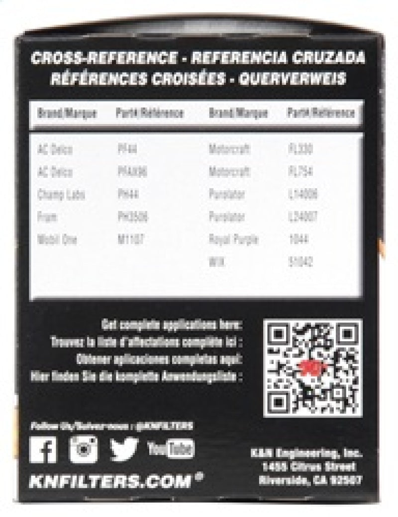 K&N premium oil filters are meticulously engineered to offer outstanding filtration and engine protection. Designed to operate with all synthetic, conventional, and blended motor oils, K&N's pleated synthetic-blend filtration media helps to shield your engine from contaminants and ensure a consistent flow of oil. The heavy-duty canister is engineered to be exceptionally durable, and a one-inch welded hex nut can be used for quick and easy filter removal. Each filter is specifically designed to withstand the service intervals recommended by vehicle manufacturers, and is protected by the K&N 1-Year Limited Warranty.