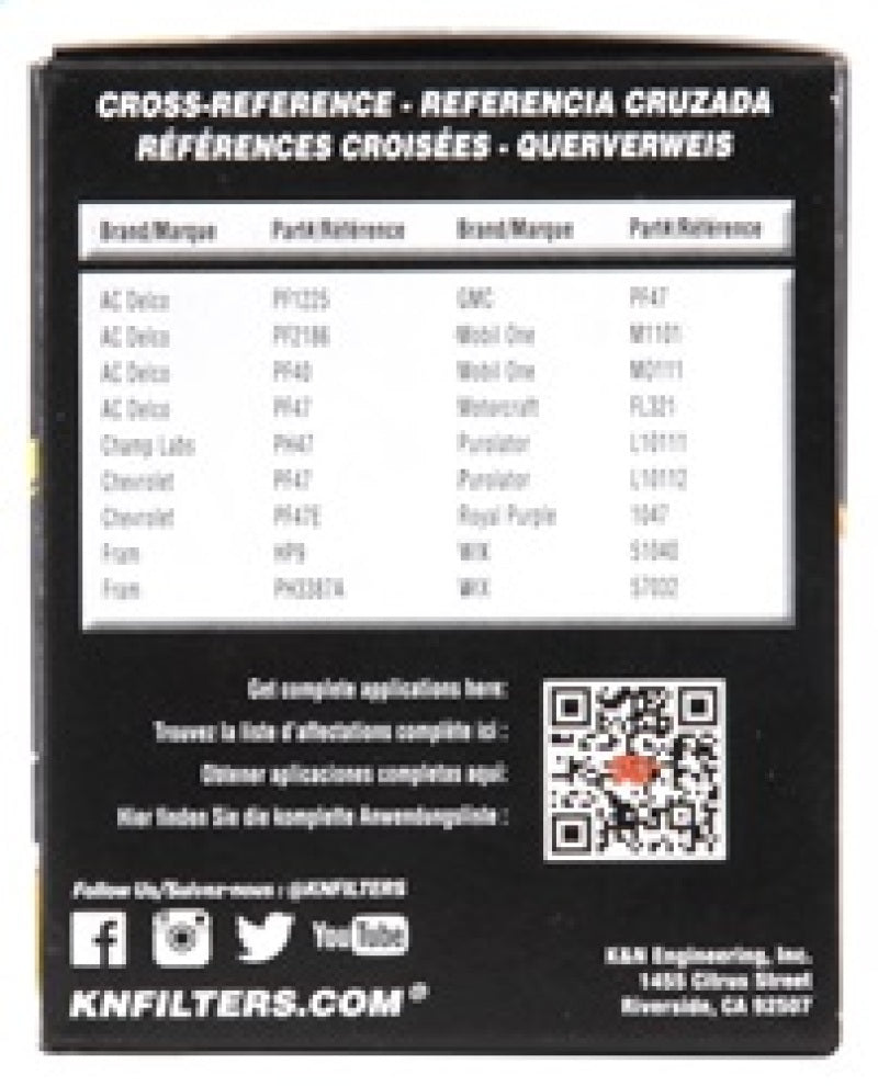 K&N premium oil filters are meticulously engineered to offer outstanding filtration and engine protection. Designed to operate with all synthetic, conventional, and blended motor oils, K&N's pleated synthetic-blend filtration media helps to shield your engine from contaminants and ensure a consistent flow of oil. The heavy-duty canister is engineered to be exceptionally durable, and a one-inch welded hex nut can be used for quick and easy filter removal. Each filter is specifically designed to withstand the service intervals recommended by vehicle manufacturers, and is protected by the K&N 1-Year Limited Warranty.