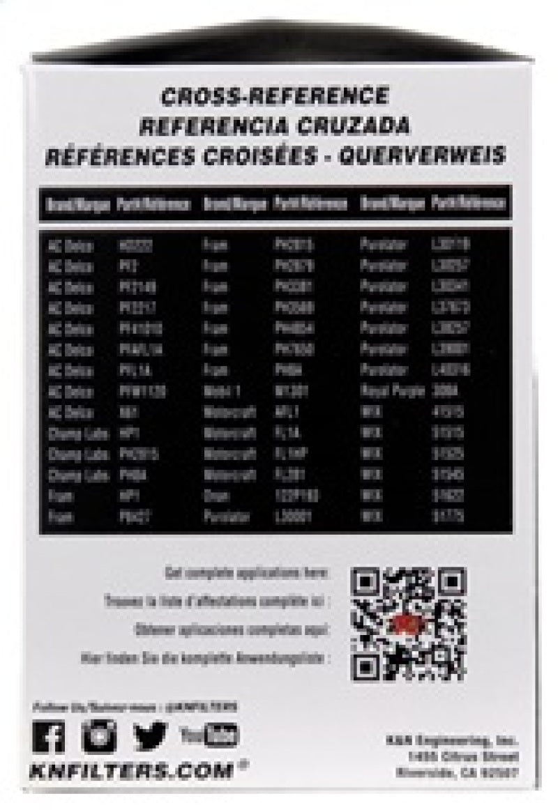 | K&N Performance Silver Oil Filters have been specially designed for professional installers and service providers. Their high flow design can help to improve engine performance by reducing oil filter restriction. Our Performance Silver Oil Filters have a fluted canister shape so they can be removed with a traditional oil filter wrench commonly available to commercial installers. These Performance Silver oil filters provide outstanding filtration and engine protection throughout their service life. They are engineered to handle all grades of synthetic, conventional and blended motor oils. The pleated media provides high capacity making them suitable for extended oil change intervals when used in accordance with the vehicle and motor oil manufacturers recommendation. K&N Performance Silver Oil Filters are available for canister and cartridge type oil filter applications. This Part Fits: