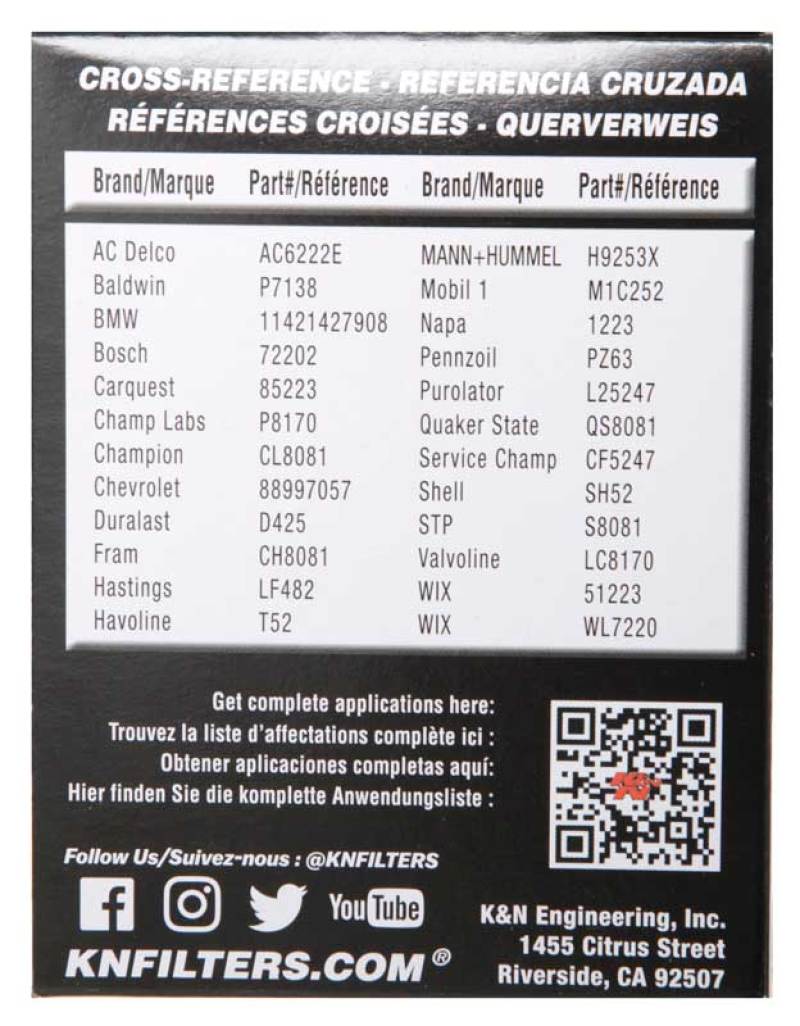 K&N Oil Filter OIL FILTER AUTOMOTIVE