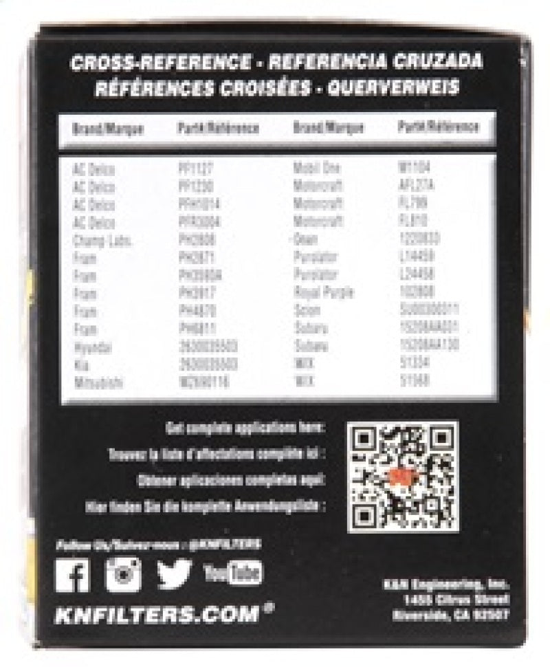 | K&N premium oil filters are meticulously engineered to offer outstanding filtration and engine protection. Designed to operate with all synthetic, conventional, and blended motor oils, K&N's pleated synthetic-blend filtration media helps to shield your engine from contaminants and ensure a consistent flow of oil. The heavy-duty canister is engineered to be exceptionally durable, and a one-inch welded hex nut can be used for quick and easy filter removal. Each filter is specifically designed to withstand the service intervals recommended by vehicle manufacturers, and is protected by the K&N 1-Year Limited Warranty. This Part Fits: