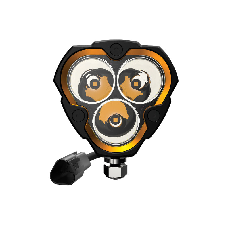 The small and mighty KC(R) FLEX ERA(TM) 3 features an optimized compact triangular design with best in class light output. Designed for flexibility, you can change beam patterns and style easily with swappable lens optics, bezels, and covers. Ushering in a new ERA in off-road lighting, the FLEX ERA 3 was born to race Baja and is a perfect complement on your next adventure.