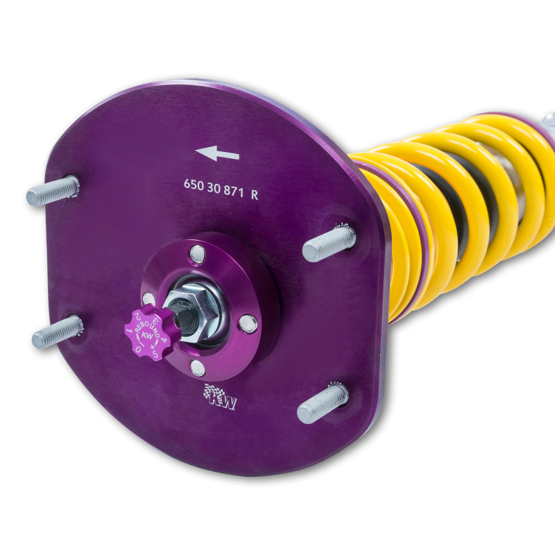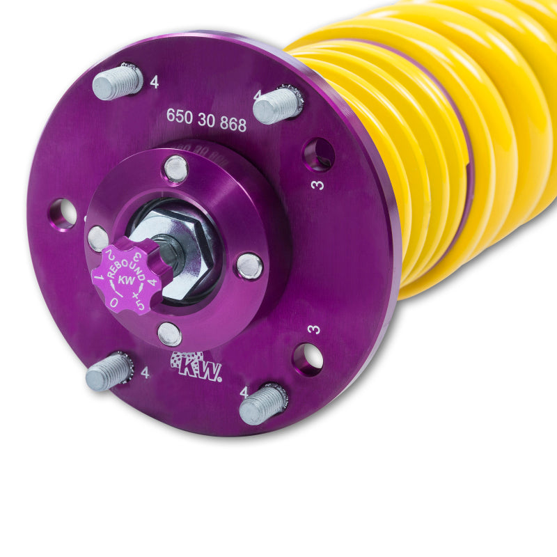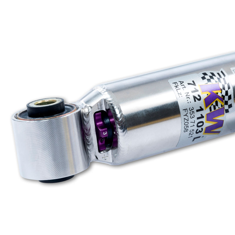 Designed to maximize the performance on vehicles with DOT-R and other ultra high-performance tire setups. KW V3 Clubsport coilovers are the ideal choice for double-duty street cars, use at HPDE's(high performance drivers education), time attack or time trials, and club level racing. The Clubsport setup was specially designed on the Nordschleife and the cont inuous adjustable ride height allows for fine corner weight or making setup changes. The TVR-A and TVC-A valve technology -provide an unmatched level of separately adjustable damping for the rebound and compression enabling a customized set up appropriate for the vehicle's modifications such as weight, tire characteristics, and other various conditions. The KW V3 Clubsport INOX-LINE coilover kit is the ideal tool for performance-oriented drivers and experienced tuning enthusiasts who place a strong emphasis on the overall performance of their suspension. The KW V3 Clubsport features patented TVR-A and TVC-A technology -hat provides separately adjustable rebound and compression damping. The extensive Adjustment -angle of the independently configurable rebound and compression make it easy to directly influence the steering behavior, directional stability, grip and handling characteristics for confident and repeatable results at the limit of driving dynamics.