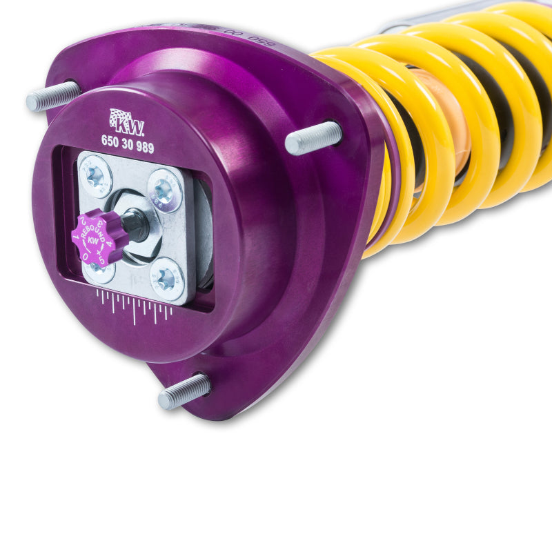 Designed to maximize the performance on vehicles with DOT-R and other ultra high-performance tire setups. KW V3 Clubsport coilovers  are the ideal choice for double-duty street cars, use at HPDE's(high performance drivers education), time attack or time trials, and club level racing. The Clubsport setup was specially designed on the Nordschleife and the continuous adjustable ride height allows for fine corner weight or making setup changes. The TVR-A and TVC-A valve technology -provide an unmatched level of separately adjustable damping for the rebound and compression enabling a customized set up appropriate for the vehicle's modifications such as weight, tire characteristics, and other various conditions. The KW V3 Clubsport INOX-LINE coilover kit is the ideal tool for performance-oriented drivers and experienced tuning enthusiasts who place a strong emphasis on the overall performance of their suspension. The KW V3 Clubsport features patented TVR-A and TVC-A technology -hat provides separately adjustable rebound and compression damping. The extensive Adjustment -angle of the independently configurable rebound and compression make it easy to directly influence the steering behavior, directional stability, grip and handling characteristics for confident and repeatable results at the limit of driving dynamics.
