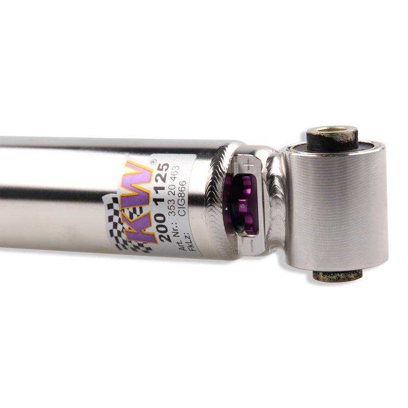 Cutting-edge motorsports technology for more performance on the road. Like every suspension product developed by KW automotive, the suspension manufacturer, and manufactured in Germany, the KW V3 Coilover suspension kit also provides a significant plus in safety reserves in road traffic. Thanks to the chassis with its high-quality dampers, springs, and elastomer spring elements, pitching and rolling movements during load changes such as evasive maneuvers, cornering, acceleration, and braking are significantly reduced. The braking distances are also shortened. Thanks to improved support and feedback, drivers not only feel safer but driving in everyday life becomes even safer. With compression and rebound stage damping, that can be set separately and independently of each other, the damper setup can be customized to your personal driving preferences or vehicle changes such as weight, tire characteristics, or altered vehicle rigidity. True performance optimization is only possible with this unique, patented system. For example, this allows the compression damping force to be increased and get more grip from the tires, to improve cornering behavior and reduce squat without simultaneously altering the rebound stage damping which is optimally matched to the spring rate, a scenario which results in reduced grip and the associated loss of performance. The KW V3 coilover kit is the ideal tool for performance-oriented drivers and experienced tuning enthusiasts who place a strong emphasis on the overall performance of their suspension. The Variant 3 features patented TVR-A and TVC-A technology that provides separately adjustable rebound and compression damping. The extensive adjustment range of the independently configurable rebound and compression make it easy to directly influence the steering behavior, directional stability, grip and handling characteristics for confident and repeatable results at the limit of driving dynamics.