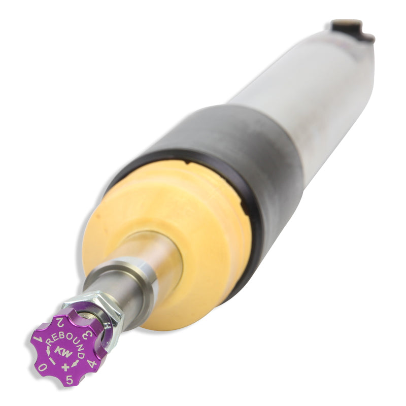 Cutting-edge motorsports technology for more performance on the road. Like every suspension product developed by KW automotive, the suspension manufacturer, and manufactured in Germany, the KW V3 Coilover suspension kit also provides a significant plus in safety reserves in road traffic. Thanks to the chassis with its high-quality dampers, springs, and elastomer spring elements, pitching and rolling movements during load changes such as evasive maneuvers, cornering, acceleration, and braking are significantly reduced. The braking distances are also shortened. Thanks to improved support and feedback, drivers not only feel safer but driving in everyday life becomes even safer. With compression and rebound stage damping, that can be set separately and independently of each other, the damper setup can be customized to your personal driving preferences or vehicle changes such as weight, tire characteristics, or altered vehicle rigidity. True performance optimization is only possible with this unique, patented system. For example, this allows the compression damping force to be increased and get more grip from the tires, to improve cornering behavior and reduce squat without simultaneously altering the rebound stage damping which is optimally matched to the spring rate, a scenario which results in reduced grip and the associated loss of performance. The KW V3 coilover kit is the ideal tool for performance-oriented drivers and experienced tuning enthusiasts who place a strong emphasis on the overall performance of their suspension. The Variant 3 features patented TVR-A and TVC-A technology that provides separately adjustable rebound and compression damping. The extensive adjustment range of the independently configurable rebound and compression make it easy to directly influence the steering behavior, directional stability, grip and handling characteristics for confident and repeatable results at the limit of driving dynamics.