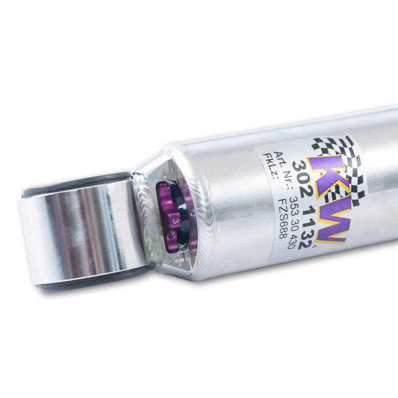 Designed to maximize the performance on vehicles with DOT-R and other ultra high-performance tire setups. KW V3 Clubsport coilovers are the ideal choice for double-duty street cars, use at HPDE's(high performance drivers education), time attack or time trials, and club level racing. The Clubsport setup was specially designed on the Nordschleife and the continuous adjustable ride height allows for fine corner weight or making setup changes. The TVR-A and TVC-A valve technology -provide an unmatched level of separately adjustable damping for the rebound and compression enabling a customized set up appropriate for the vehicle's modifications such as weight, tire characteristics, and other various conditions. The KW V3 Clubsport INOX-LINE coilover kit is the ideal tool for performance-oriented drivers and experienced tuning enthusiasts who place a strong emphasis on the overall performance of their suspension. The KW V3 Clubsport features patented TVR-A and TVC-A technology -hat provides separately adjustable rebound and compression damping. The extensive Adjustment -angle of the independently configurable rebound and compression make it easy to directly influence the steering behavior, directional stability, grip and handling characteristics for confident and repeatable results at the limit of driving dynamics.