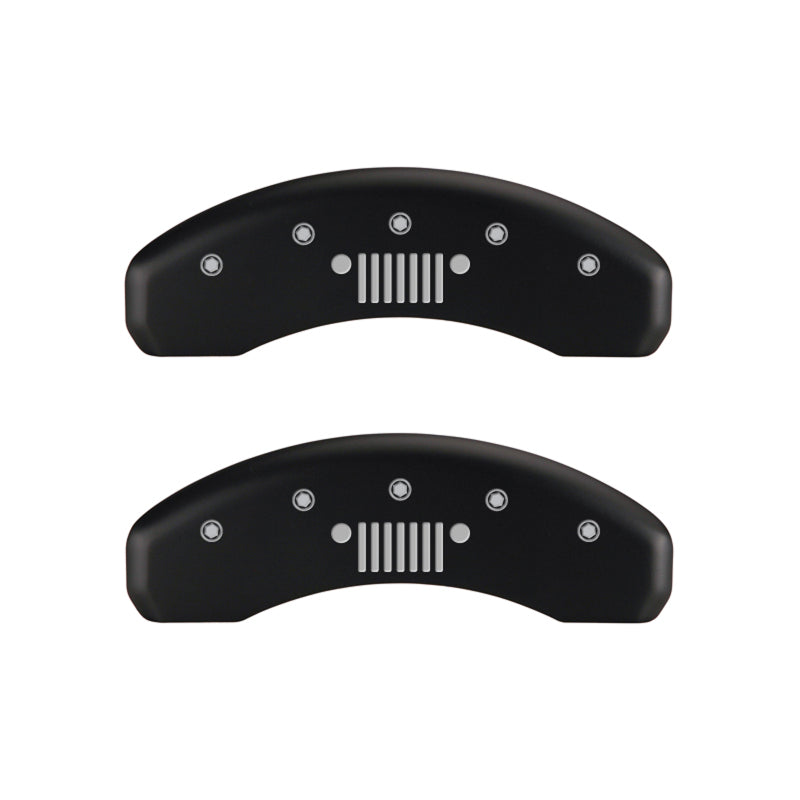MGP 4 Caliper Covers Engraved Front JEEP Engraved Rear JEEP Grill logo Red finish silver ch