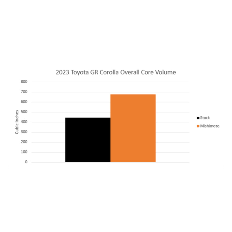 Upgrade your 2023+ Toyota GR Corolla with the Mishimoto Performance Intercooler for a remarkable boost in performance and efficiency. This direct-fit intercooler features a robust 4” thick bar-and-plate core, ensuring superior heat transfer. With a 52% increase in core volume and a 10% reduction in airflow restriction compared to the stock intercooler, it significantly enhances your vehicle's cooling capabilities. Enjoy cooler air with a reduction of 38.5°F in intercooler outlet temperatures, translating to bolt-on power gains of 11.42 horsepower and 14.93 ft-lbs of torque. The intercooler’s durable cast-aluminum end tanks and CNC-machined inlet/outlet ensure smooth airflow and lasting durability.--Available in a sleek silver or black powder-coated finish, the Mishimoto intercooler not only performs exceptionally but also looks great. Plus, the anodized aluminum ducting maximizes airflow through the external fins, further improving cooling efficiency. With the Mishimoto Lifetime Warranty, you can drive with confidence, knowing your investment is protected. Don’t settle for stock