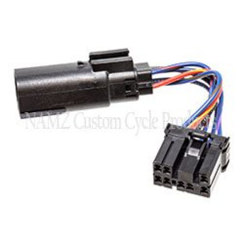 The NAMZ Rear Fender Harness Adapter allows the connection of an OEM Rear Fender Harness from a 10-13 Road Glide or Street Glide to a 97-13 Road King or Electra Glide, 98-09 Road Glide, and 06-09 Street Glide.