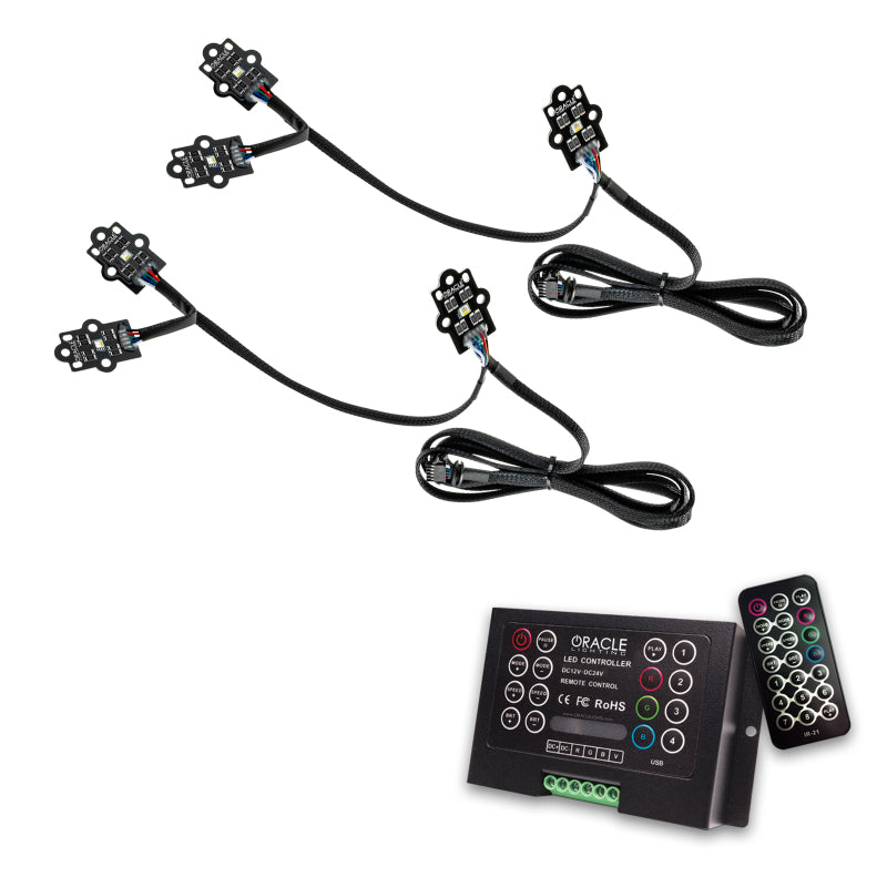 Style your truck with this ColorSHIFT(tm) RGB+W Headlight DRL Upgrade for 2020-2021 GMC Sierra 2500/3500 HD from ORACLE Lighting. Featuring our high-performance RGB+W chips, this kit allows you to use the existing DRL feature on your GMC Sierra LED Headlights and easily convert it to color-changing DRLs while maintaining a true white DRL function. Upgrade your lights to any color imaginable and instantly switch over to a crisp white OEM DRL color. These 2020-2021 GMC Sierra RGB+W DRL boards can make hundreds of different colors, dozens of patterns, control the brightness, and even the speed of the functions using one of our ColorSHIFT(tm) controllers! These replacement boards feature our ColorSHIFT(tm) technology along with an extra white LED which allows for truer white tones. Give your GMC Sierra the attitude adjustment and stand out from the crowd with the new ColorSHIFT(tm) RGB+W DRL kit from ORACLE Lighting! For even more customization, this product pairs perfectly with our 2020-2021 GMC Sierra 2500/3500 ORACLE ColorSHIFT(tm) RGB Demon Eye Headlight Upgrade! Features: Bright output with less power consumption True white OEM DRL color Control colors, brightness, speed, and functions with controller Customized look with even more personalization with ColorSHIFT(tm) technology 1 year warranty Specifications: This product is designed to fit models with the factory LED DRL option. Headlight disassembly required. Professional installation recommended with our premium silicone sealant. White and amber are considered on-road legal colors. Other colors not intended for on-road use, please verify your state and local driving laws. Kit Includes the following: ColorSHIFT(tm) RGB+W DRL PCBs for Driver and Passenger Side Headlights Constant Current LED Driver Hub with DRL Trigger Wire Heavy-Duty IP67 Wiring Adapters.