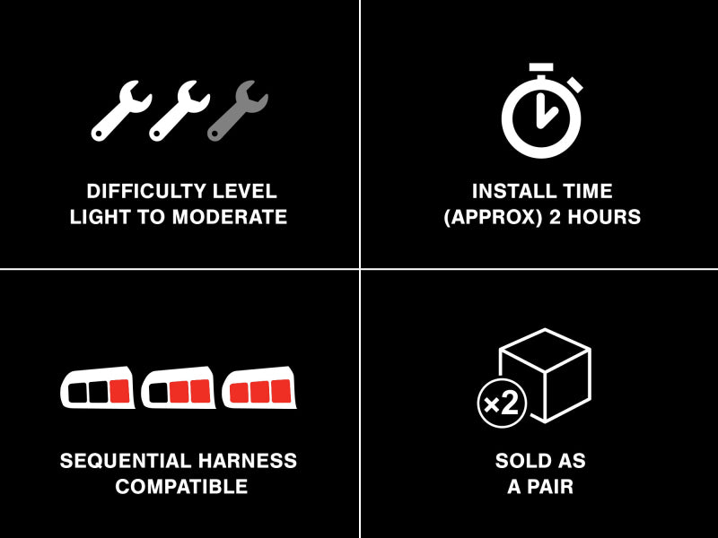 Bring your 1996-1998 Mustang into the 21st Century with a set of Raxiom Icon Tail Lights. These Raxiom Tail Lights will add the bold iconic styling of the fifth generation Mustang to your very own ride. Featuring built-in modern LED technology that is used for both the reverse and running light rings, these Raxiom Icon Tail Lights will dramatically transform the appearance of your SN95 Mustang. Raxiom Icon LED Tail Lights are manufactured using state of the art LED electronic components with a simple plug-in connector that easily inserts into the stock wiring (or Raxiom sequential) tail light harness for a simple straight forward installation. The high intensity LED running light rings of these Raxion Icon Tail Lights not only look great, but they also improve your driving safety as they are much brighter than the standard factory incandescent bulbs making sure you are clearly seen at night. These Raxiom Icon LED Tail Lights are designed to work with your existing Raxiom Sequential Tail Light Harness to give your SN95 Pony the high tech styling of the late model Mustangs. If you would like a slower speed for the sequence of your tail lights to get that modern muscle car styling, combine this sequential tail light kit with the Raxiom Turn Signal Flasher V1 (For Incandescent Bulbs) or Raxiom Turn Signal Flasher V2 (For LED Bulbs). Raxiom Icon LED Tail Lights not only improve the appearance of your Mustang, but they also meet or exceed the strict guidelines set forth by the U.S. Department of transportation (DOT) making them DOT compliant under compliance# QR1300191. These Raxiom Tail Lights can be used on 1994-1995 Mustangs when installed with a tail light wiring harness from any 1996-1998 Mustang. Bulbs are not included. These tail lights reuse the stock bulbs or you can upgrade to Raxiom LED Tail Light Bulbs. Raxiom LED Tail Light Bulbs will require the use of a Raxiom Modified Turn Signal Flasher for proper operation.