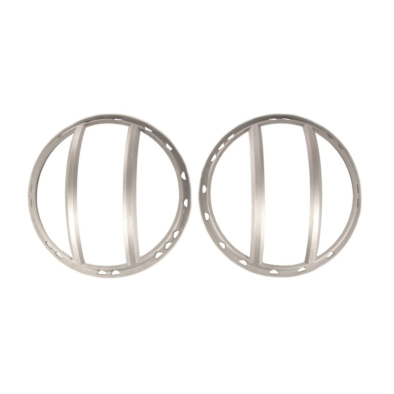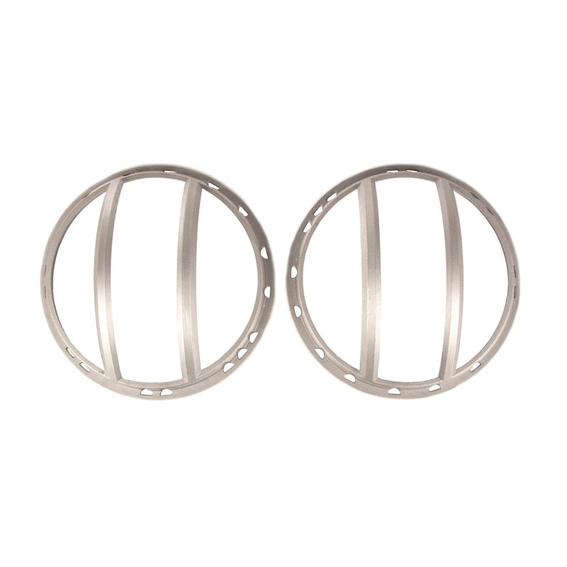 The Rugged Ridge Pivotal Headlight Euro Guards special patent-pending design allows for the guard to be rotated on the headlight for a variety of looks. The angry attitude of the Rugged Ridge Spartan Grille is amplified by the angled light guards, allowing you to make your own unique automotive expression. The Pivotal Euro Guard still retains the classic off-road styling of the original headlight Euro Guard but benefits from solid cast aluminum construction for a lightweight, but seriously sturdy, option in headlight protection, on and off-road. Pivotal Headlight Guards feature a premium textured black powder coat finish to accent any exterior color (Red Powder Coat and Raw Aluminum finishes are COMING SOON!). Installs easily in minutes using factory hardware and replaces the factory headlight retaining ring. (Sold in pairs) Patent Pending.