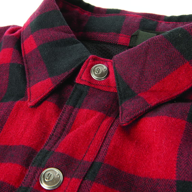 The Black Nine™ reinforced moto shirt features a cotton-poly blend frame with a snap down collar and hidden YKK main zipper opening. The shoulders and elbows are reinforced with Dupont™ Kevlar fiber thread and include expansion gussets in the shoulders allowing for improved range of motion.