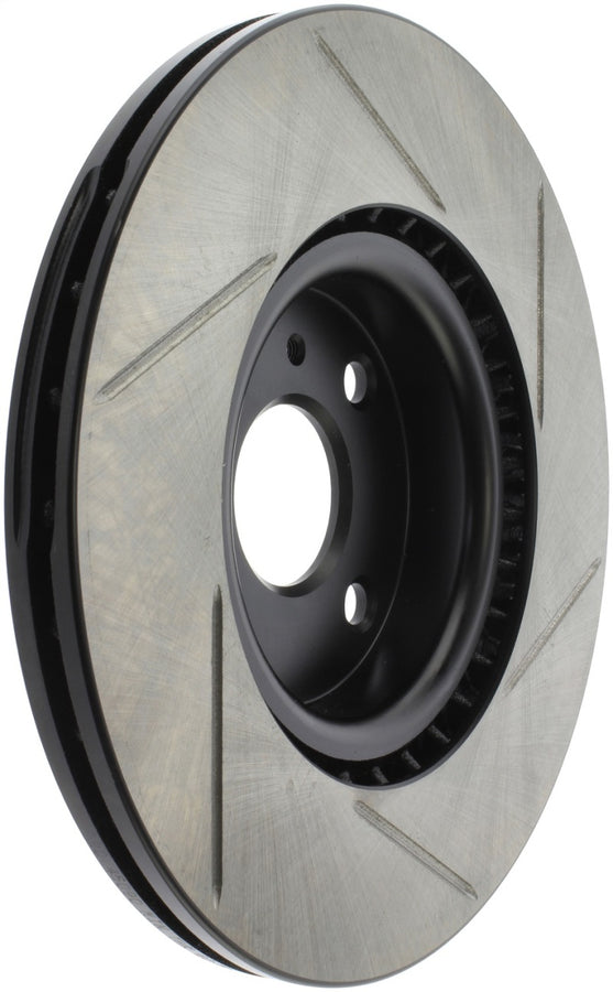 StopTech Slotted Sport Rotors are 1-piece direct replacement brake discs for factory brake systems and stock calipers that look great behind your wheels – and offer significantly improved braking performance. The unique slotting aids with heat and brake dust dispersal; prevents glazing of the pads; adds bite and improves wet and dry braking performance. Built to last; the black e-coating provides protection from corrosion and the high carbon metallurgy (in most applications) offers quieter operation; better crack resistance and increased performance.