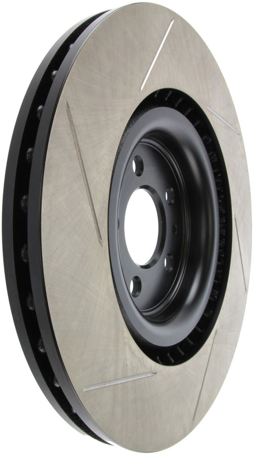 StopTech Slotted Sport Rotors are 1-piece direct replacement brake discs for factory brake systems and stock calipers that look great behind your wheels – and offer significantly improved braking performance. The unique slotting aids with heat and brake dust dispersal; prevents glazing of the pads; adds bite and improves wet and dry braking performance. Built to last; the black e-coating provides protection from corrosion and the high carbon metallurgy (in most applications) offers quieter operation; better crack resistance and increased performance.