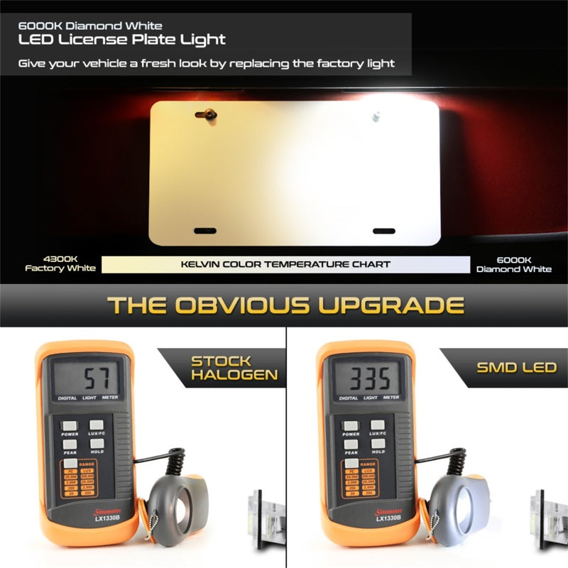 XTune License Plate Bulb Assembly Replacement; Pair; White 5500K; OEM Style Connector; w/Built In LED/Ultra Bright Plug And Play Installation;